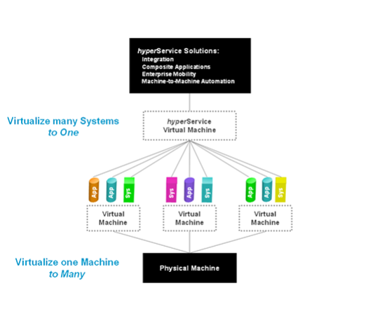a hyperService® is a universal building block that can represent any application or system function, regardless of the underlying architecture. This property enables hyperServices® to transform functions from heterogeneous systems into homogenous building blocks, thus eliminating application silos.
